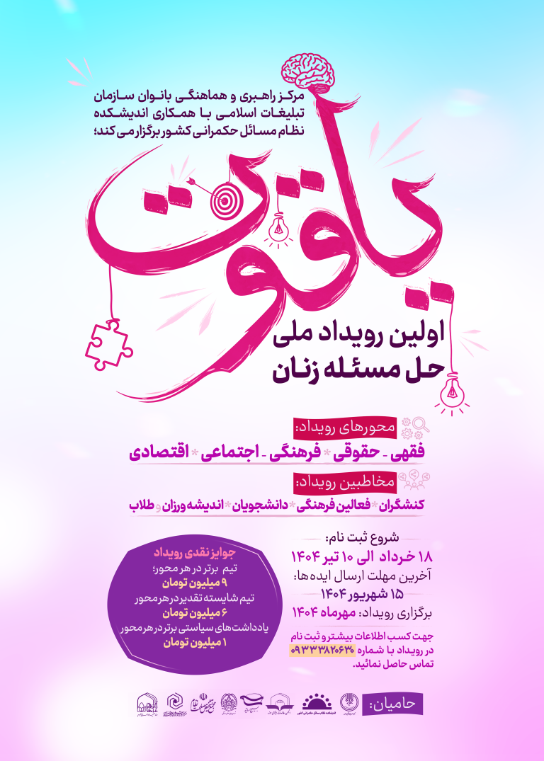💠 رویداد ملی حل مسئله زنان (یاقوت) برگزار می شود.💠 به گزارش امور ارتباطات و رسانه اندیشکده نظام مسائل حکمرانی کشور اولین