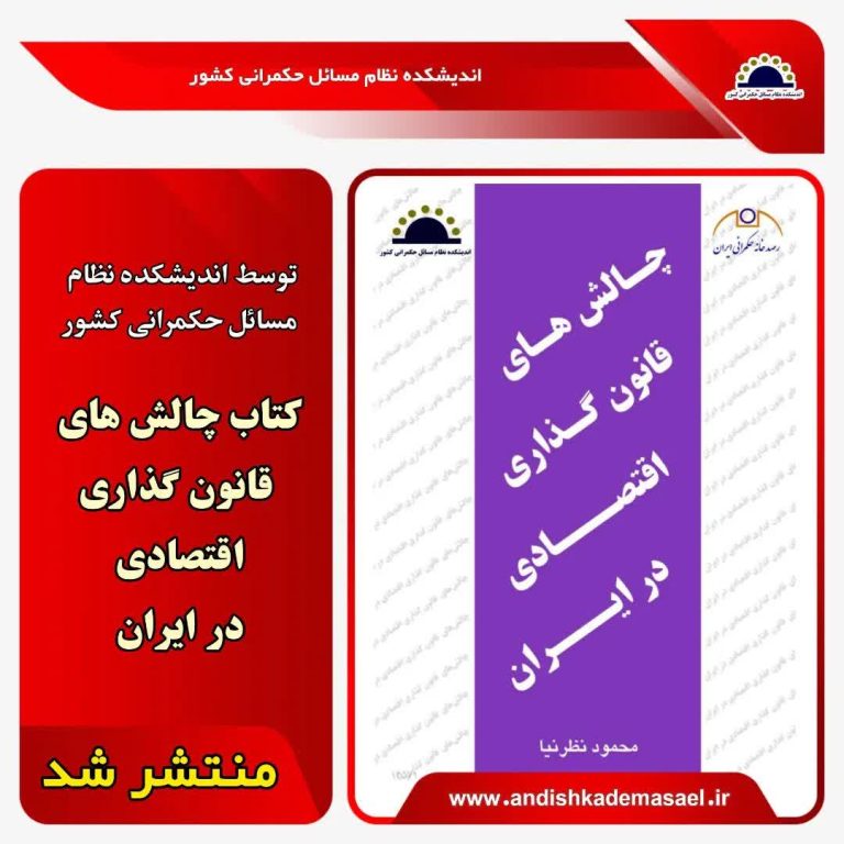 کتاب چالش های قانون گذاری اقتصادی در ایران منتشر شد. به گزارش امور ارتباطات و رسانه اندیشکده نظام مسائل حکمرانی کشور کتاب چالش های قانون