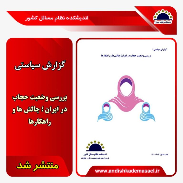 چهارمین گزارش سیاستی اندیشکده نظام مسائل منتشر شد. 1402-01-04 بدون دیدگاه به گزارش روابط عمومی و اموربین الملل اندیشکده نظام مسائل کشور چهارمین گزارش سیاستی اندیشکده نظام مسائل با موضوع” بررسی وضعیت حجاب در ایران؛ چالش ادامه مطلب »