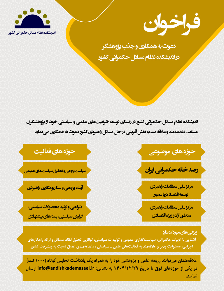 فراخوان دعوت به همکاری و جذب پژوهشگر در اندیشکده نظام مسائل حکمرانی کشور