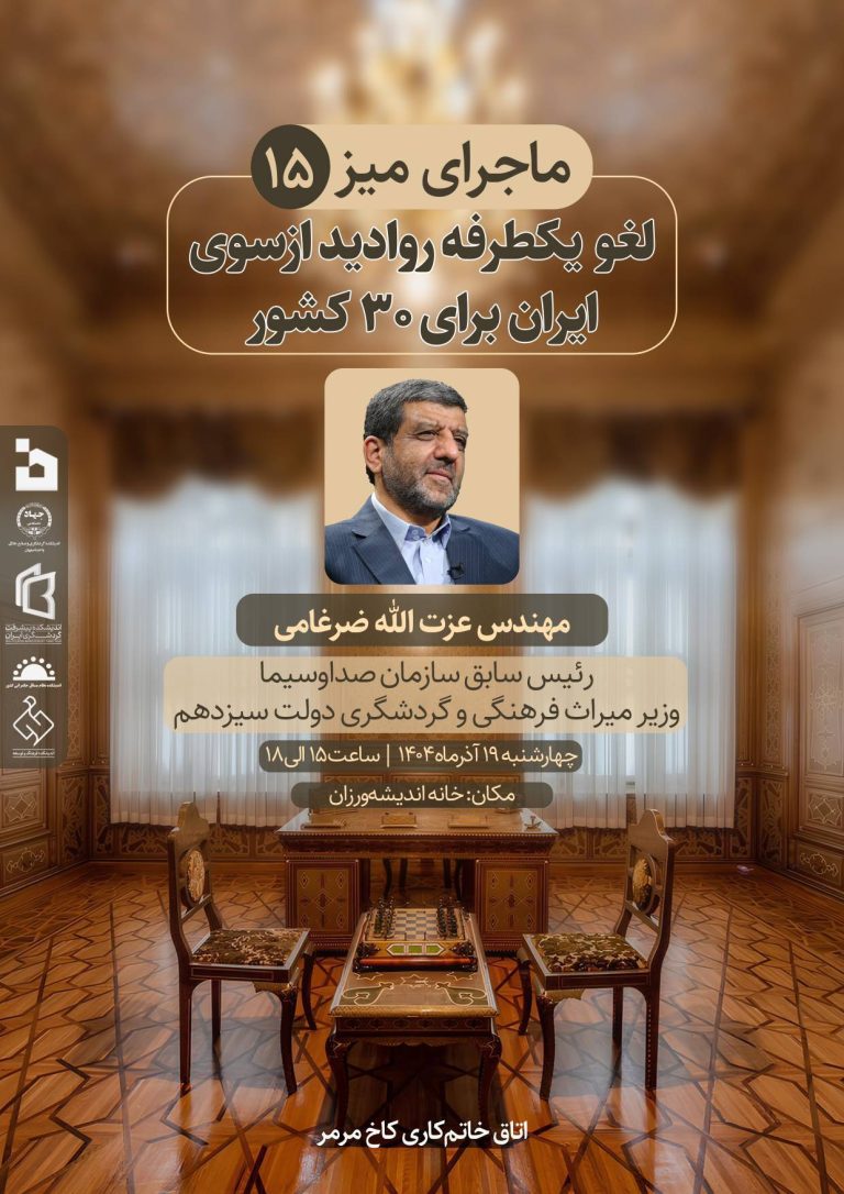 📣 *لغو یکطرفه روادید از سوی ایران برای ۳۰ کشور* نشست پانزدهم از مجموعه رویدادهای ماجرای میز 👤 *با حضور:* مهندس عزت الله ضرغامی رئیس